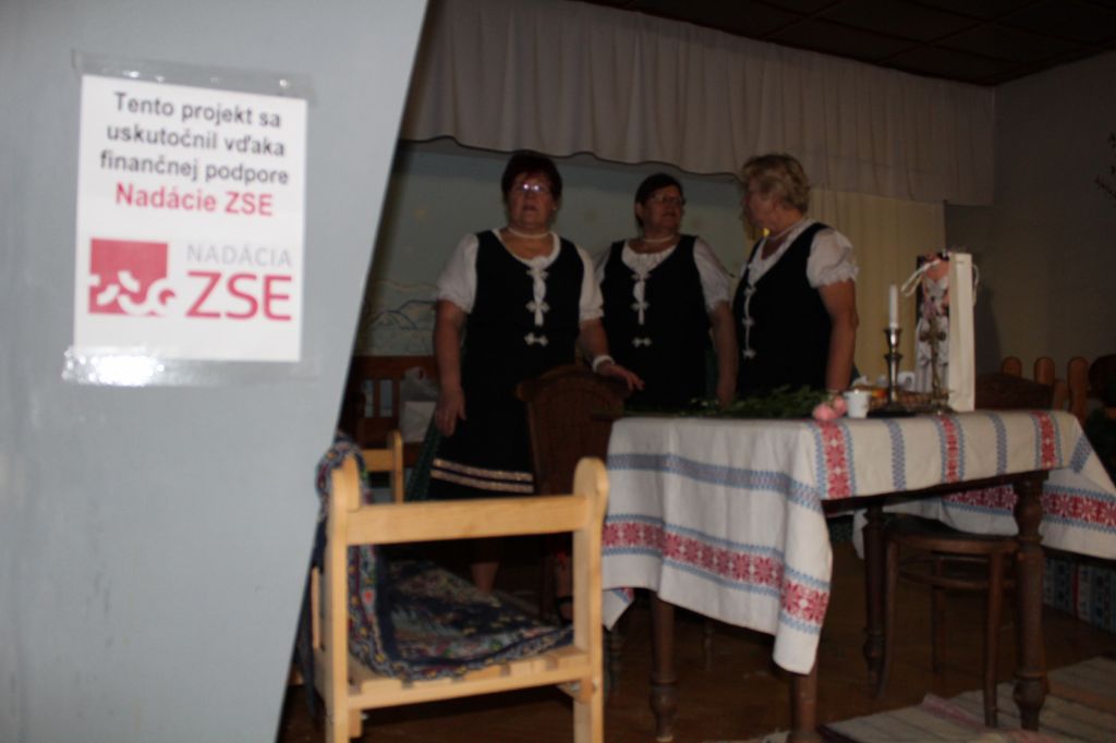 ĎAKUJEME: pánovi starostovi za podporu a možnosť zachovávať naše krásne slovenské zvyky a tradície, Nadácii ZSE za finančnú podporu, Matúšovi Hlozákovi z firmy www.mmproduction.sk za osvetlenie, Mirke a Petrovi Lorinczovým z www.felisfoto.sk za fotky a video, Ondrejovi Palicovi, Petrovi Hozzánovi, Alenke Mikulecovej - za pomoc pri organizácii, Helenke a Rudovi Čačaným za technickú spoluprácu, členom Konopy a všetkým, ktorí akýmkoľvek spôsobom prispeli k úspešnému uvedeniu predstavenia.