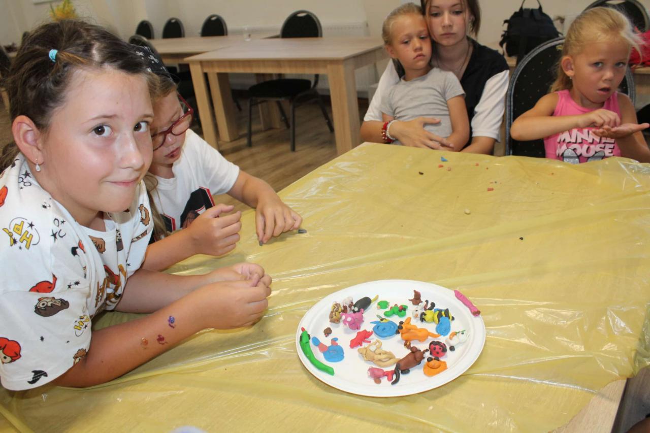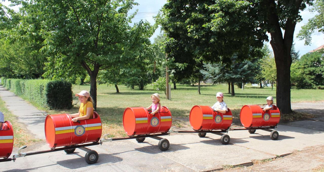 Dnes deti modelovali zvieratká z plastelíny a súťažili nielen v nafukovaní balónov, ale aj v tanci s nimi a ich pukaní. Zahrali si starú hru "Kráľu, kráľu daj vojáčka" a po dobrom obede navštívili pani starostku na Obecnom úrade, dostali od nej darčeky a sladkosti a už ich čakali hasiči v novej zbrojnici. Ochotný hasič pán Peter Schusnix deťom nielen porozprával o práci hasičov, ale aj poukazoval strojový park dobrovoľných hasičov a potom ich s Andrejom Rybárom povozili v úžasnom vláčiku po parku. ![]()