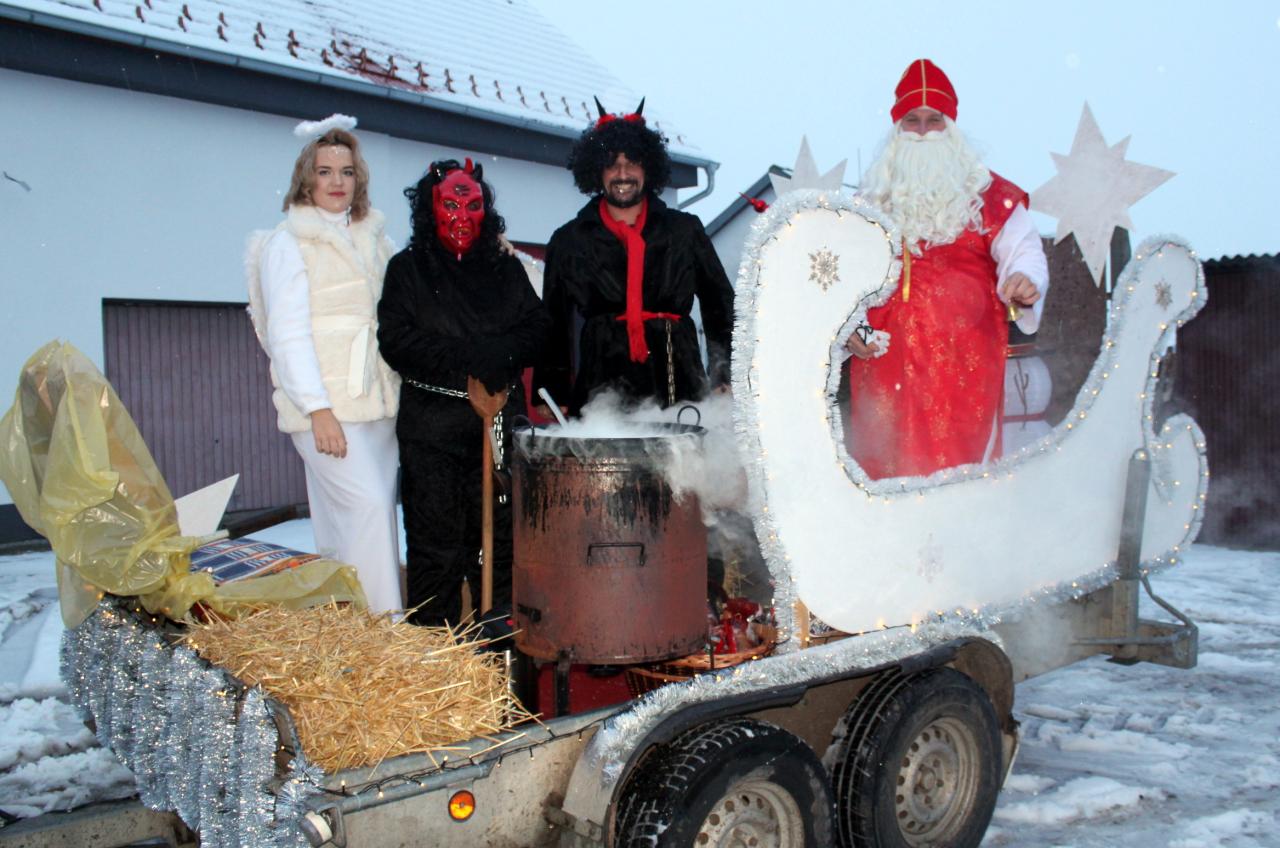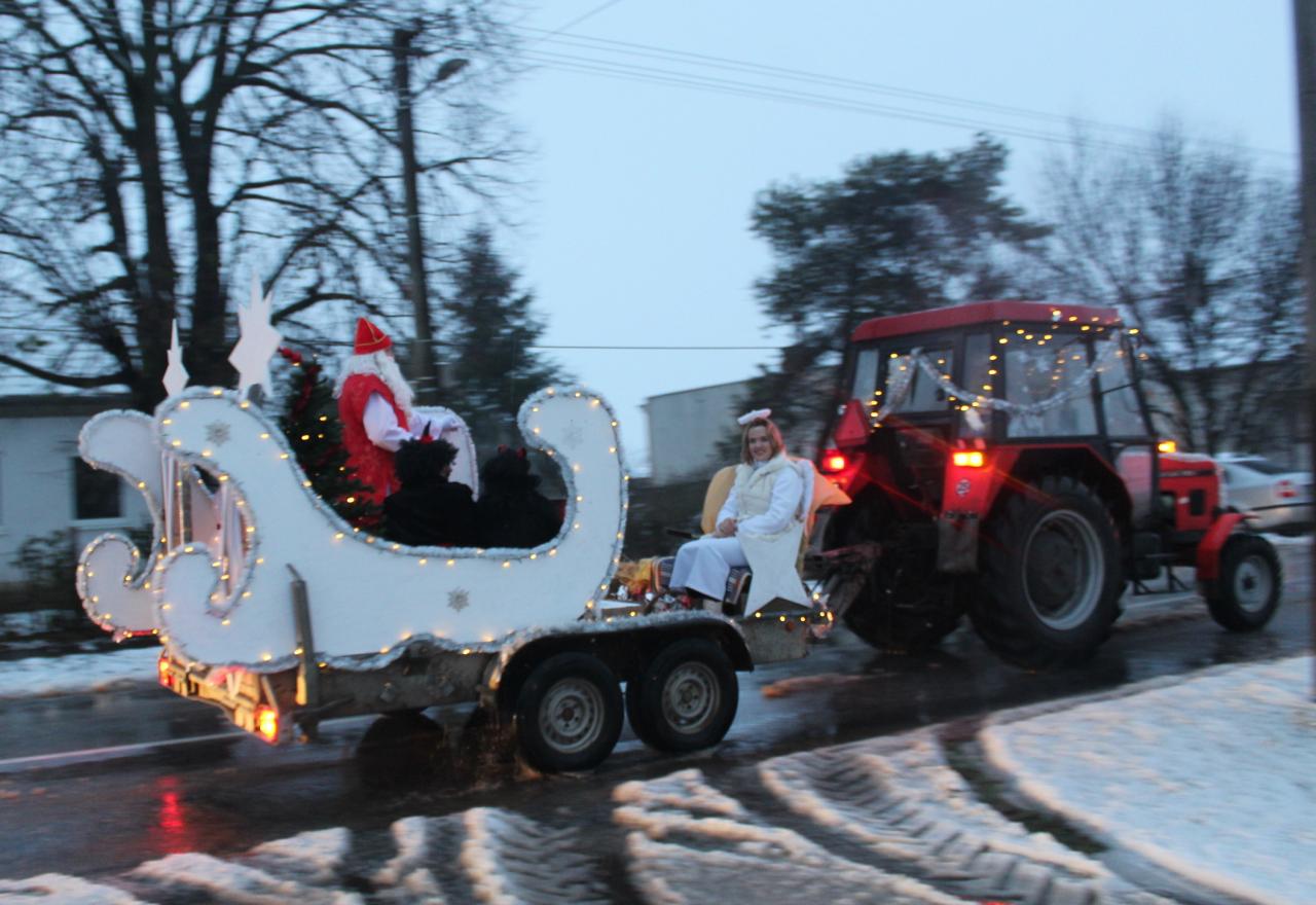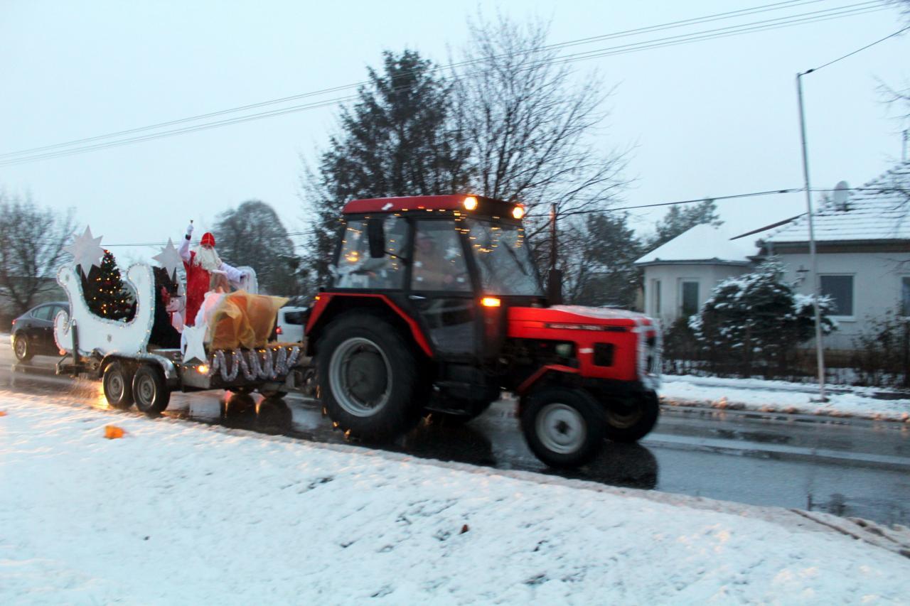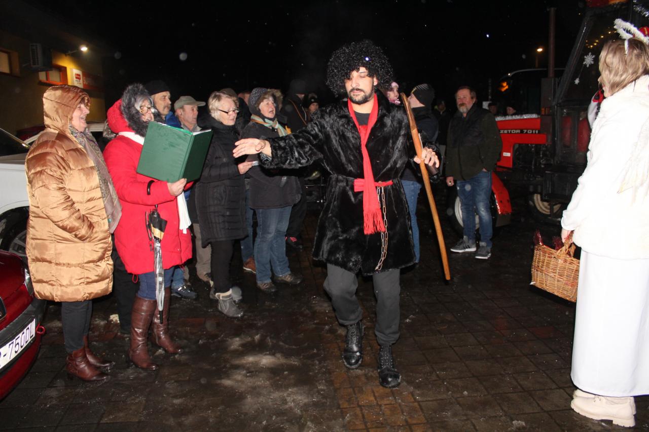 Netradične na saniach ťahaných traktorov zavítal do ulíc Rastislavíc Mikuláš so svojimi pomocníkmi. Deti s rozžiarenými tvárami vítali svetielkujúci vzácny povoz a tešili sa aj dospelí. Na námestí pred Jednotou zaspieval súbor Rastislavická konopa vianočné piesne a čert niektoré zo žien aj vytancoval. Mikuláš nezabudol ani na šikovné predavačky v COOP Jednota a navštívil ich v obchode a obdaroval balíčkami. Sprievodkyňou nebeskej a pekelnej návštevy bola pani starostka Tatiana Kořínková.![]()