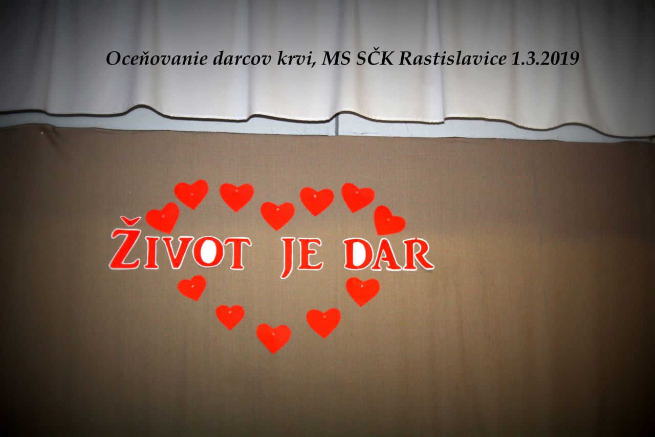 V piatok 1.marca 2019 sa v Kultúrnom dome v Rastislaviciach uskutočnilo slávnostné oceňovanie darcov krvi a výročná schôdza členov MS SČK Rastislavice.