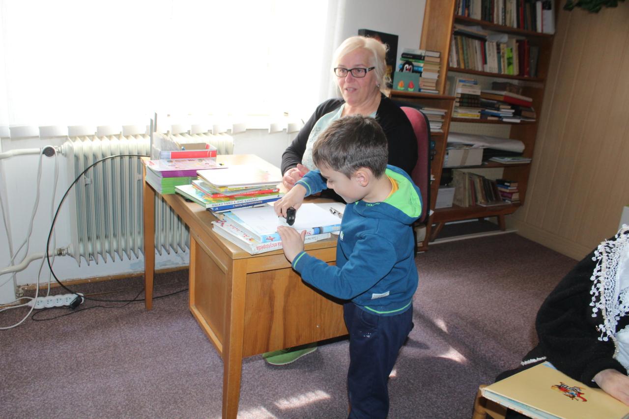 Na úvod ich srdečne privítala pani starostka, ktorá im neskôr prečítala aj peknú rozprávku. Pani riaditeľka Mgr. Mária Derďáková deťom priblížila význam kníh a čítania a zároveň im predstavila priestory našej obecnej knižnice.