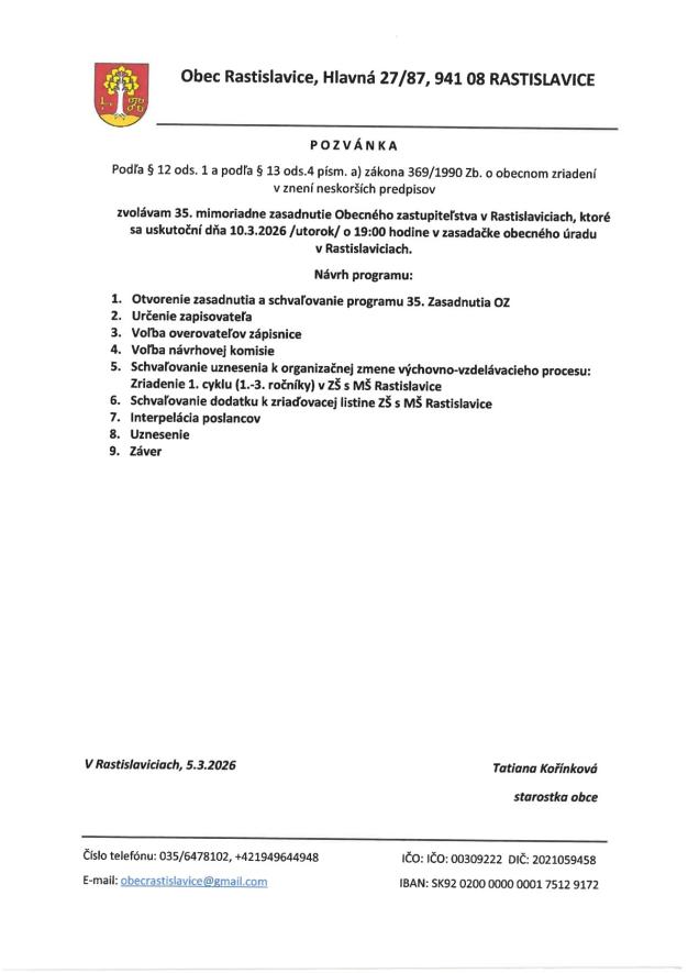 Pozvánka na mimoriadne OZ .